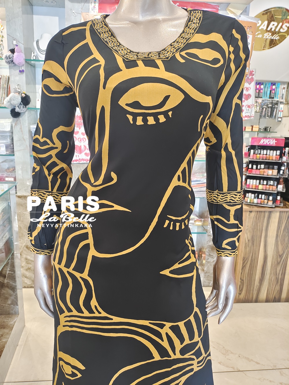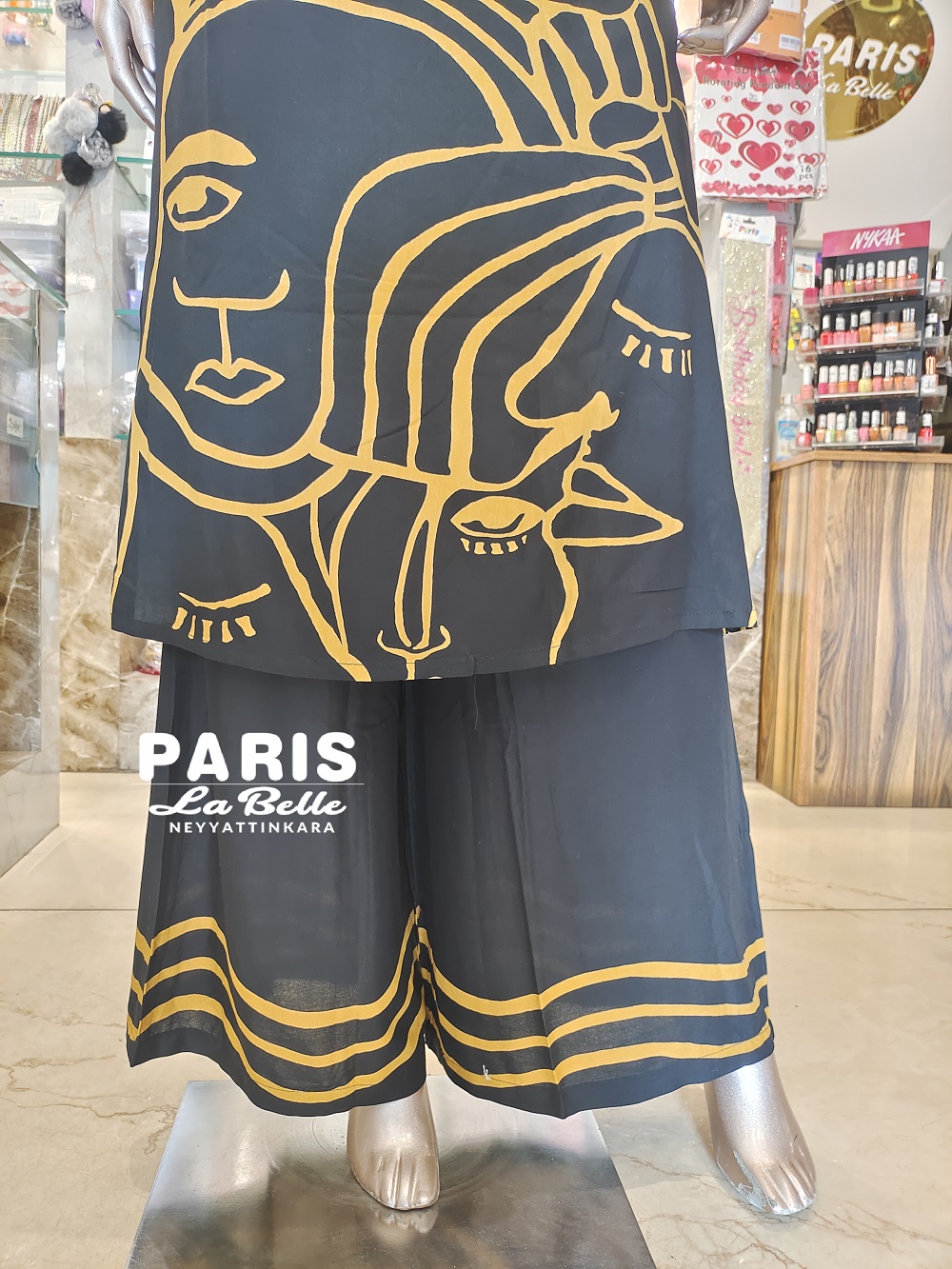 It's a modern, artistic take on the traditional indian kurta palazzo set.